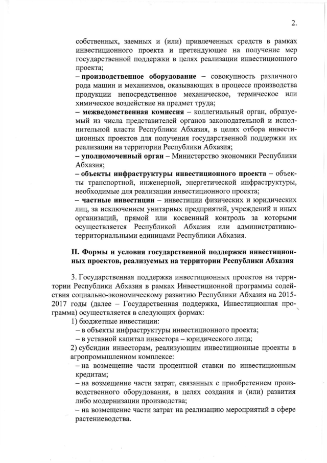 Постановление Кабинета Министров Республики Абхазия от 29.07.2016 № 136 "О мерах государственной поддержки инвестиционных проектов, реализуемых на территории Республики Абхазия в рамках Инвестиционной программы содействия социально-экономическому развитию Республики Абхазия на 2015-2017 годы"