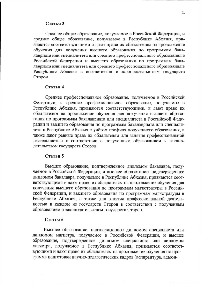 Постановление Кабинета Министров Республики Абхазия от 29.07.2016 № 138 "О проекте Соглашения между Правительством Республики Абхазия и Правительством Российской Федерации о взаимном признании образования и квалификаций"