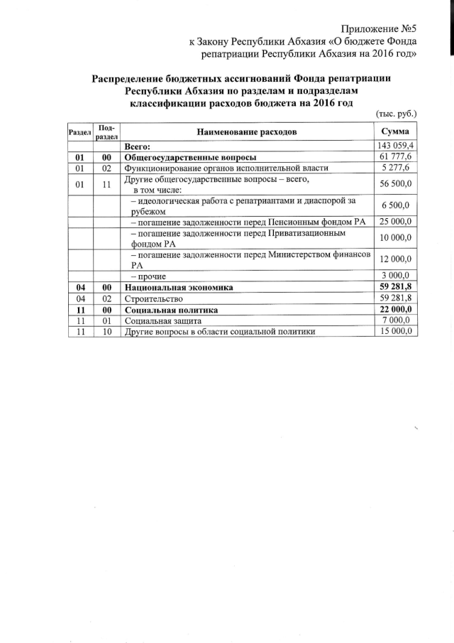 Постановление Кабинета Министров Республики Абхазия от 01.12.2015 № 169 "О проекте Закона Республики Абхазия "О бюджете Фонда репатриации Республики Абхазия на 2016 год", утверждении штатного расписания и сметы расходов аппарата управления Фонда репатриации Республики Абхазия на 2016 год"