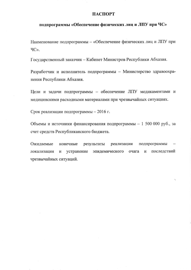 Постановление Кабинета Министров Республики Абхазия от 15.12.2015 № 184 "Об утверждении целевой программы "Здоровье-2016"