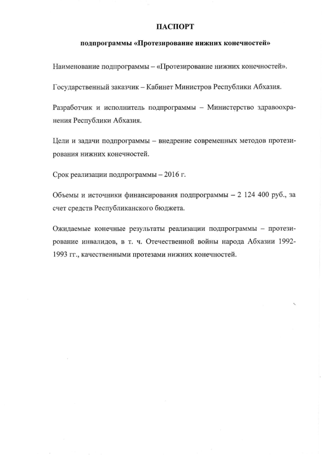 Постановление Кабинета Министров Республики Абхазия от 15.12.2015 № 184 "Об утверждении целевой программы "Здоровье-2016"