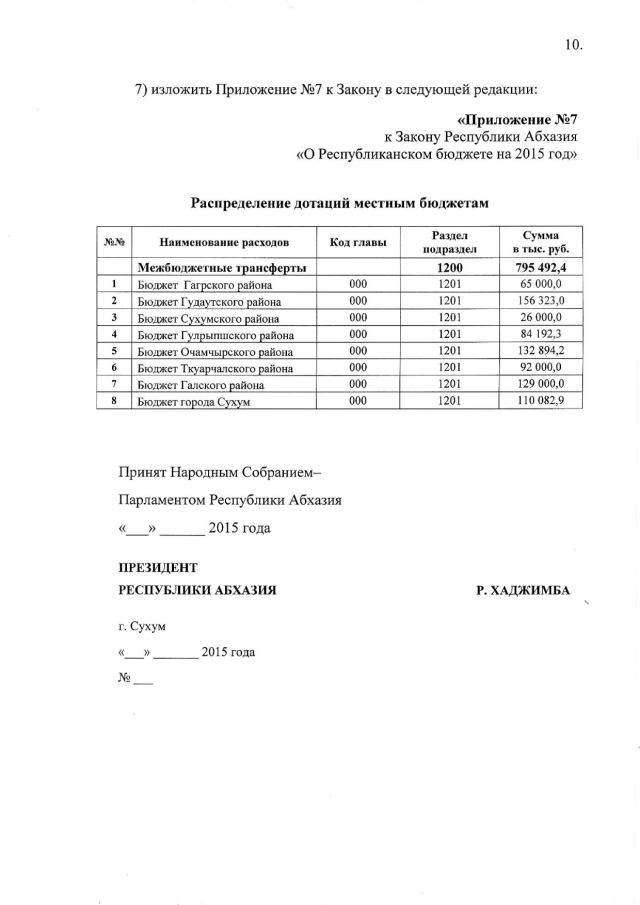 Постановление Кабинета Министров Республики Абхазия от 15.12.2015 № 183 "О проекте Закона Республики Абхазия "О внесении изменений в Закон Республики Абхазия "О Республиканском бюджете на 2015 год"