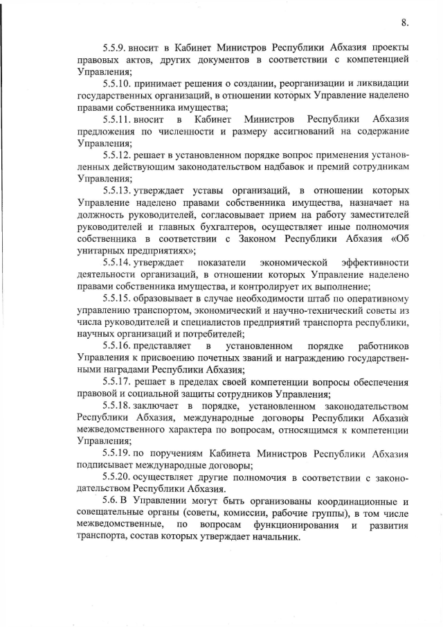 Постановление Кабинета Министров Республики Абхазия от 23.12.2015 № 187 "Об утверждении "Положения о Государственном управлении Республики Абхазия по транспорту"