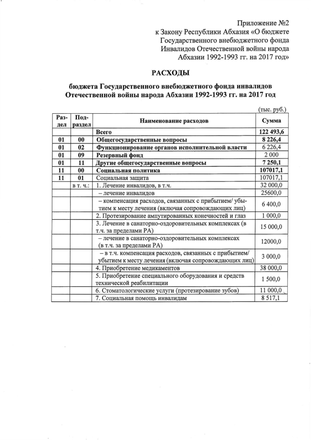 Постановление Кабинета Министров Республики Абхазия от 21.12.2016 № 212 "О проекте Закона Республики Абхазия "О бюджете Государственного внебюджетного фонда инвалидов Отечественной войны народа Абхазии 1992-1993 гг. на 2017 год>, утверждении штатного расписания и сметы расходов аппарата управления Государственного внебюджетного фонда инвалидов Отечественной войны народа Абхазии 1992-1993 гг. на 2017 год"