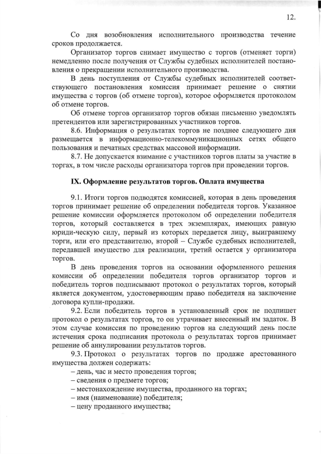 Постановление Кабинета Министров Республики Абхазия от 18.09.2018 № 134 "Об утверждении "Порядка организации и проведения продажи (реализации на торгах) имущества должника, арестованного во исполнение судебных решений или актов органов, которым предоставлено право принимать решения об обращении взыскания на имущество"