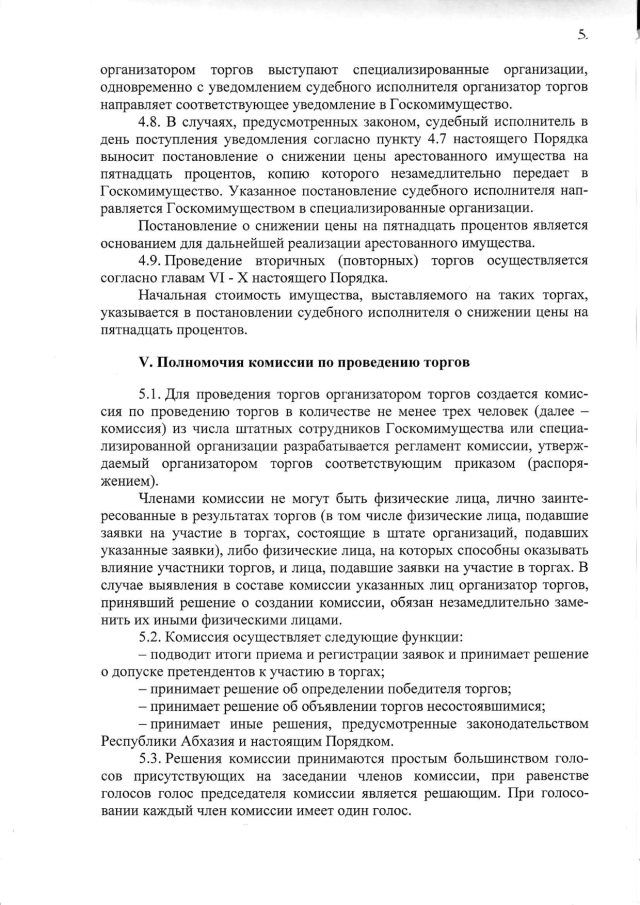 Постановление Кабинета Министров Республики Абхазия от 18.09.2018 № 134 "Об утверждении "Порядка организации и проведения продажи (реализации на торгах) имущества должника, арестованного во исполнение судебных решений или актов органов, которым предоставлено право принимать решения об обращении взыскания на имущество"