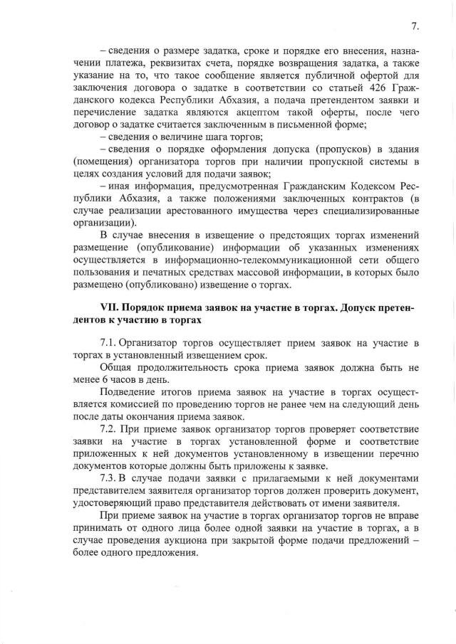 Постановление Кабинета Министров Республики Абхазия от 18.09.2018 № 134 "Об утверждении "Порядка организации и проведения продажи (реализации на торгах) имущества должника, арестованного во исполнение судебных решений или актов органов, которым предоставлено право принимать решения об обращении взыскания на имущество"