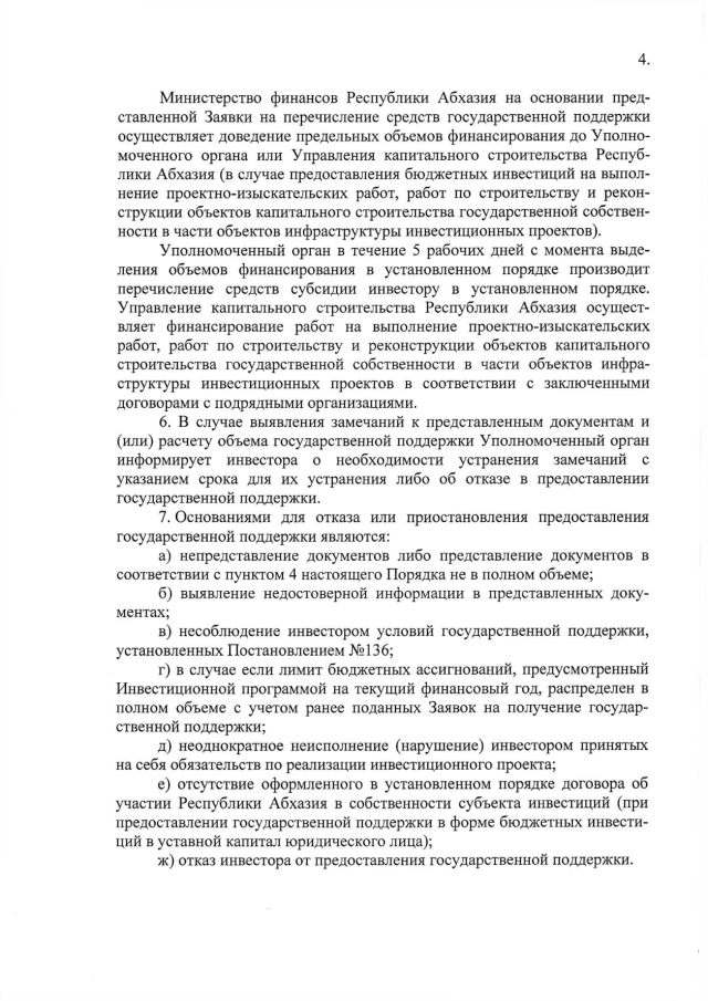 Постановление Кабинета Министров Республики Абхазия от 15.09.2017 № 135 "Об утверждении "Порядка предоставления государственной поддержки инвестиционных проектов, отобранных для предоставления государственной поддержки в рамках Инвестиционной программы содействия социально-экономическому развитию Республики Абхазия на 2017-2019 годы"