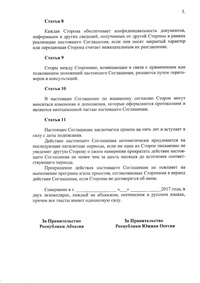 Постановление Кабинета Министров Республики Абхазия от 24.11.2017 № 166 "О заключении Соглашения между Правительством Республики Абхазия и Правительством Республики Южная Осетия о сотрудничестве в области сельского хозяйства"