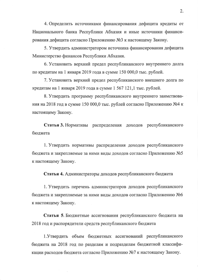 Постановление Кабинета Министров Республики Абхазия от 15.11.2017 № 159 "О проекте Закона Республики Абхазия "О республиканском бюджете на 2018 год"