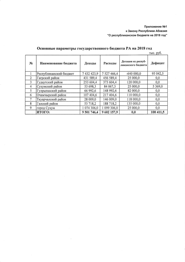 Постановление Кабинета Министров Республики Абхазия от 15.11.2017 № 159 "О проекте Закона Республики Абхазия "О республиканском бюджете на 2018 год"