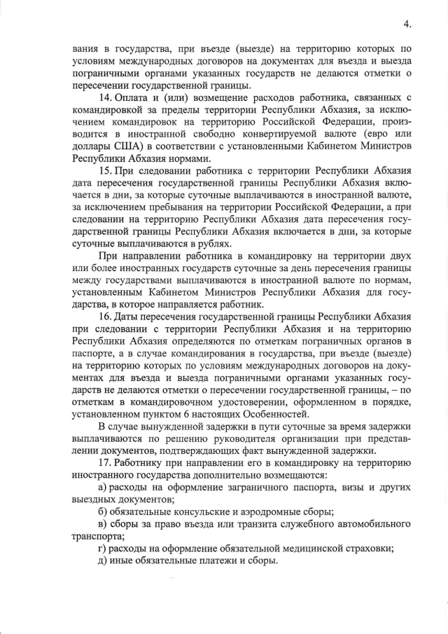 Постановление Кабинета Министров Республики Абхазия от 27.12.2017 № 180 "Об установлении "Особенностей направления работников в служебные командировки"
