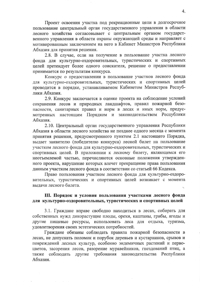 Постановление Кабинета Министров Республики Абхазия от 28.12.2017 № 186 "Об утверодении "Порядка пользования участками лесного фонда для культурно-оздоровительных, туристических и спортивных целей" и "Ставок лесных податей за пользование участками лесного фонда для культурно-оздоровительных, туристических и спортивных целей"
