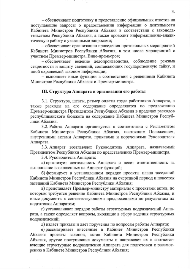 Постановление Кабинета Министров Республики Абхазия от 28.12.2017 № 191 "Об утверждении "Положения об Аппарате Кабинета Министров Республики Абхазия"