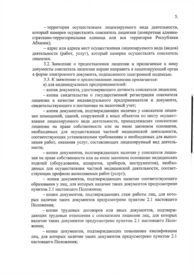Постановление Кабинета Министров Республики Абхазия от 28.12.2017 № 196 "Об утверждении "Положения о порядке лицензирования частной медицинской деятельности"