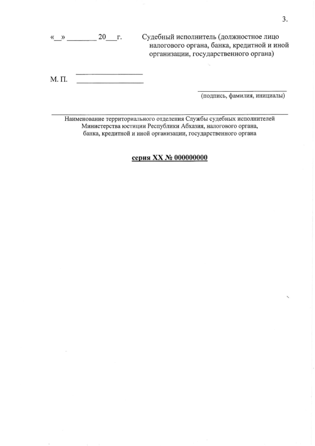 Постановление Кабинета Министров Республики Абхазия от 28.12.2017 № 197 "Об утверждении "Формы бланка исполнительного листа, используемого в работе судов общей юрисдикции Республики Абхазия и Арбитражного суда Республики Абхазия", "Порядка изготовления, учета, хранения и уничтожения бланков исполнительных листов, используемых в работе судов общей юрисдикции Республики Абхазия и Арбитражного суда Республики Абхазия"