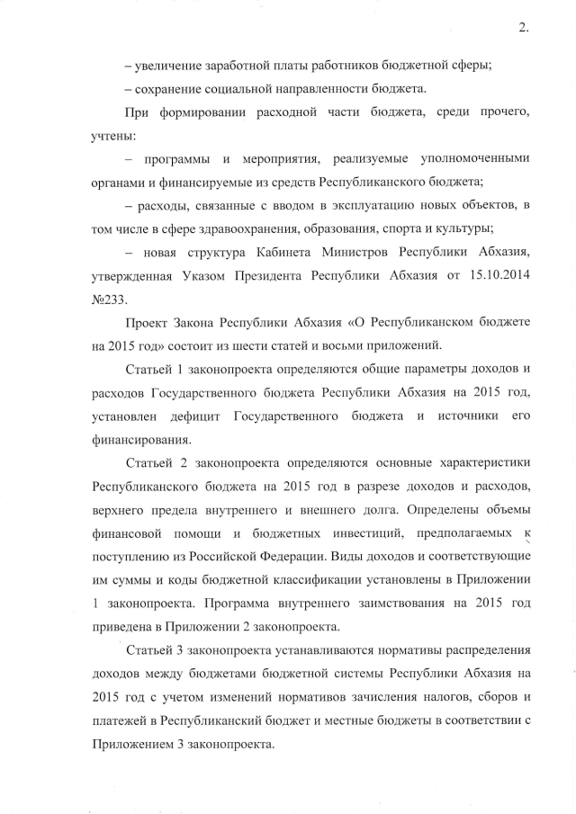 Постановление Кабинета Министров Республики Абхазия от 30.01.2015 № 4 "О проекте Закона Республики Абхазия "О Республиканском бюджете на 2015 год"
