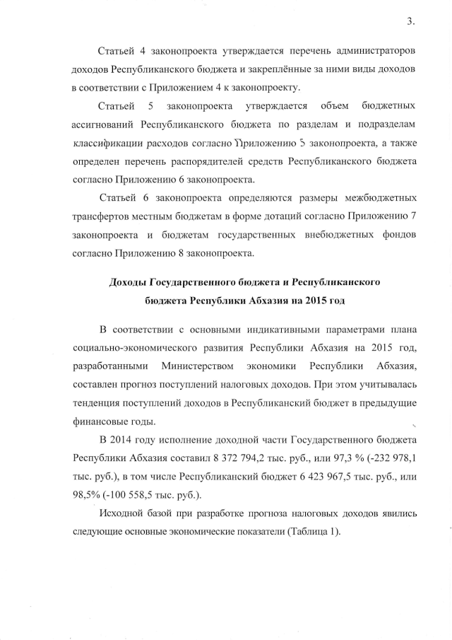 Постановление Кабинета Министров Республики Абхазия от 30.01.2015 № 4 "О проекте Закона Республики Абхазия "О Республиканском бюджете на 2015 год"