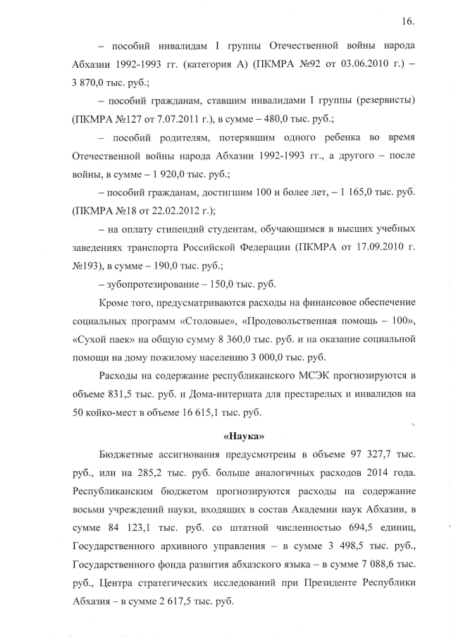 Постановление Кабинета Министров Республики Абхазия от 30.01.2015 № 4 "О проекте Закона Республики Абхазия "О Республиканском бюджете на 2015 год"