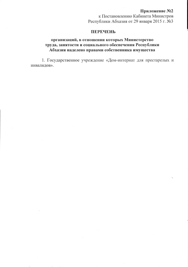 Постановление Кабинета Министров Республики Абхазия от 29.01.2015 № 3 "Об утверждении "Положения о Министерстве труда, занятости и социального обеспечения Республики Абхазия"