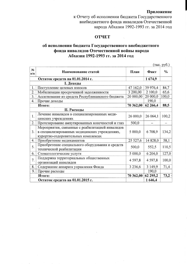 Постановление Кабинета Министров Республики Абхазия от 26.03.2015 № 28 "Об исполнении бюджета Государственного внебюджетного фонда инвалидов Отечественной войны народа Абхазии 1992-1993 гг. за 2014 год"