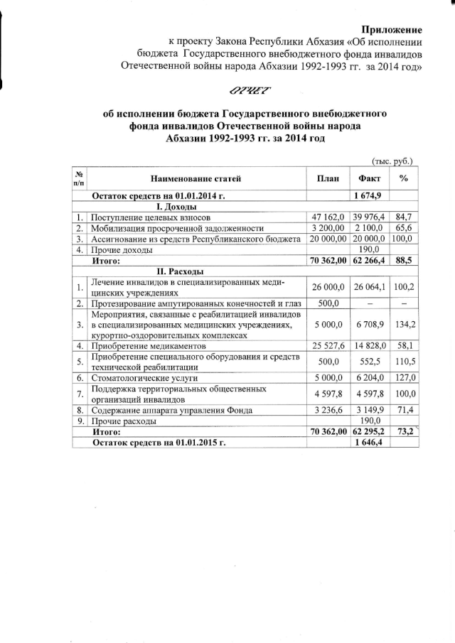 Постановление Кабинета Министров Республики Абхазия от 26.03.2015 № 28 "Об исполнении бюджета Государственного внебюджетного фонда инвалидов Отечественной войны народа Абхазии 1992-1993 гг. за 2014 год"