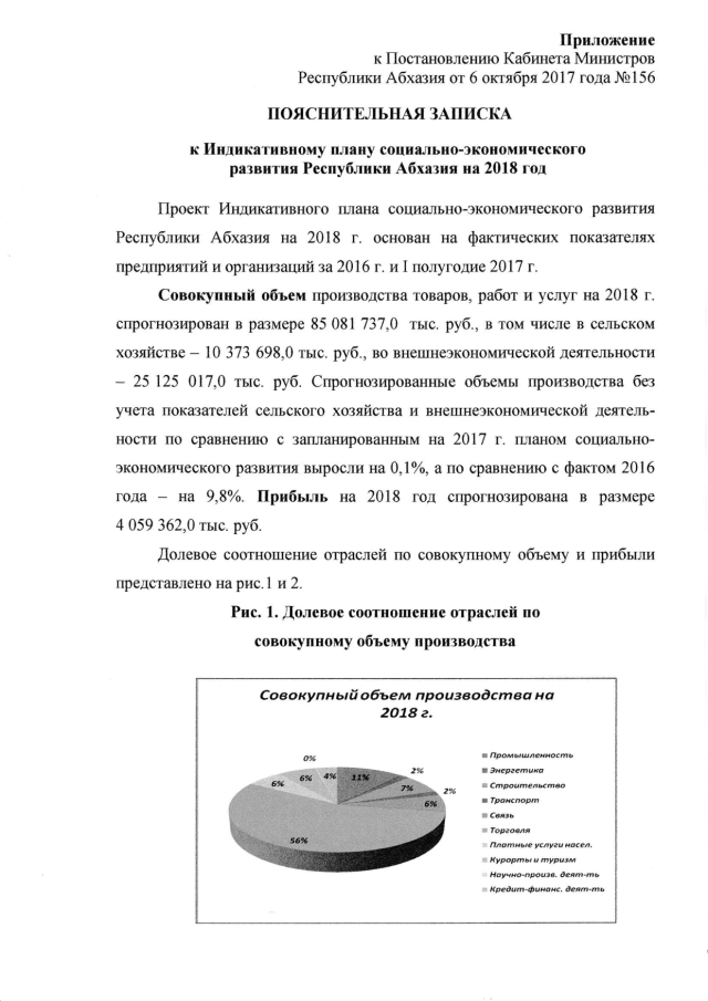 Постановление Кабинета Министров Республики Абхазия от 06.10.2017 № 156 "Об утверждении "Индикативного плана социально-экономического развития Республики Абхазия на 2018 год"