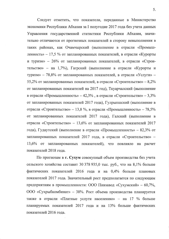 Постановление Кабинета Министров Республики Абхазия от 06.10.2017 № 156 "Об утверждении "Индикативного плана социально-экономического развития Республики Абхазия на 2018 год"
