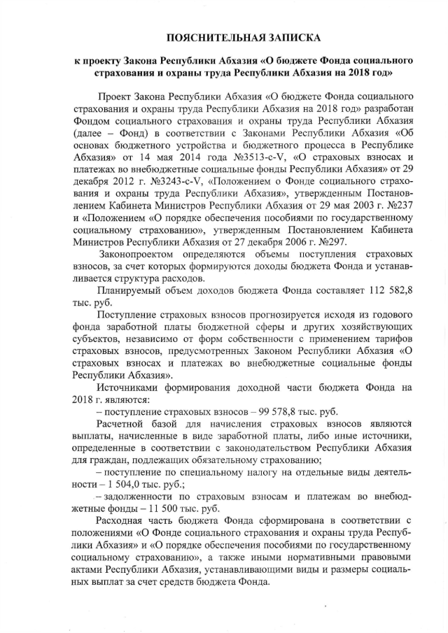 Постановление Кабинета Министров Республики Абхазия от 15.11.2017 № 165 "О проекте Закона Республики Абхазия "О бюджете Фонда социального страхования и охраны труда Республики Абхазия на 2018 год", утверждении штатного расписания и сметы расходов аппарата управления Фонда социального страхования и охраны труда Республики Абхазия на 2018 год"