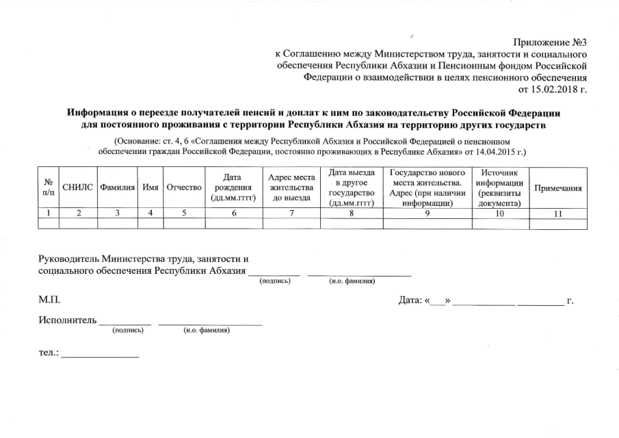 Распоряжение Кабинета Министров Республики Абхазия от 15.02.2018 № 2 "О проведении переговоров и подписании Соглашения между Министерством труда, занятости и социального обеспечения Республики Абхазия и Пенсионным фондом Российской Федерации о взаимодействии в целях пенсионного обеспечения"