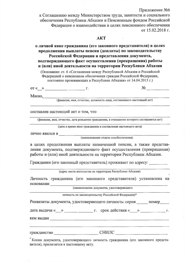 Распоряжение Кабинета Министров Республики Абхазия от 15.02.2018 № 2 "О проведении переговоров и подписании Соглашения между Министерством труда, занятости и социального обеспечения Республики Абхазия и Пенсионным фондом Российской Федерации о взаимодействии в целях пенсионного обеспечения"