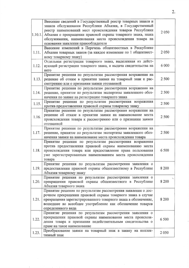 Постановление Кабинета Министров Республики Абхазия от 05.02.2018 № 13 "О внесении изменения в Постановление Кабинета Министров Республики Абхазия от 30 ноября 2010 года № 241 "Об установлении пошлины за совершение юридически значимых действий, связанных с регистрацией товарного знака, регистрацией и предоставлением права пользования наименованием места происхождения товара, а также основания ее возврата"