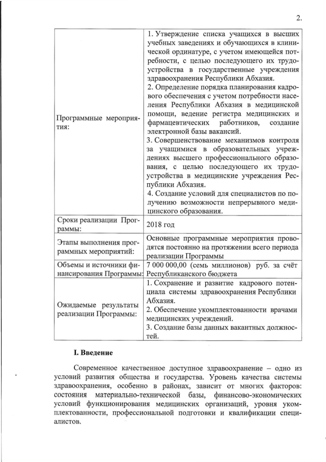 Постановление Кабинета Министров Республики Абхазия от 21.03.2018 № 27 "Об утверждении ведомственной целевой программы "Кадровое обеспечение системы здравоохранения Республики Абхазия"