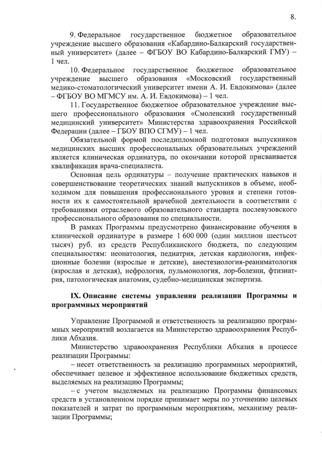 Постановление Кабинета Министров Республики Абхазия от 21.03.2018 № 27 "Об утверждении ведомственной целевой программы "Кадровое обеспечение системы здравоохранения Республики Абхазия"