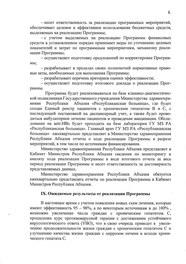 Постановление Кабинета Министров Республики Абхазия от 21.03.2018 № 30 "Об утверждении ведомственной целевой программы "Лечение хронического гепатита С и профилактика гепатита В"