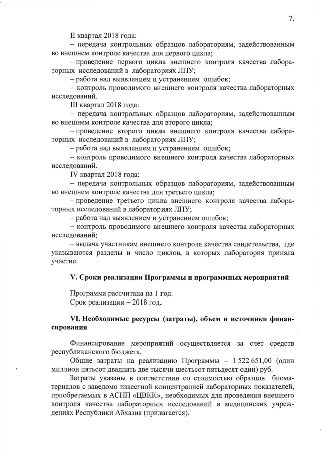 Постановление Кабинета Министров Республики Абхазия от 21.03.2018 № 31 "Об утверждении ведомственной целевой программы "Проведение внешнего контроля качества лабораторных исследований системой межлабораторных сличительных испытаний"