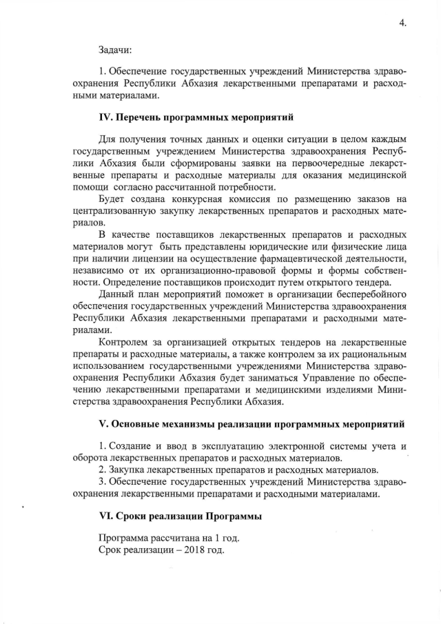 Постановление Кабинета Министров Республики Абхазия от 21.03.2018 № 34 "Об утверждении ведомственной целевой программы "Централизованное приобретение лекарственных препаратов и расходных материалов для обеспечения государственных учреждений Министерства здравоохранения Республики Абхазия"