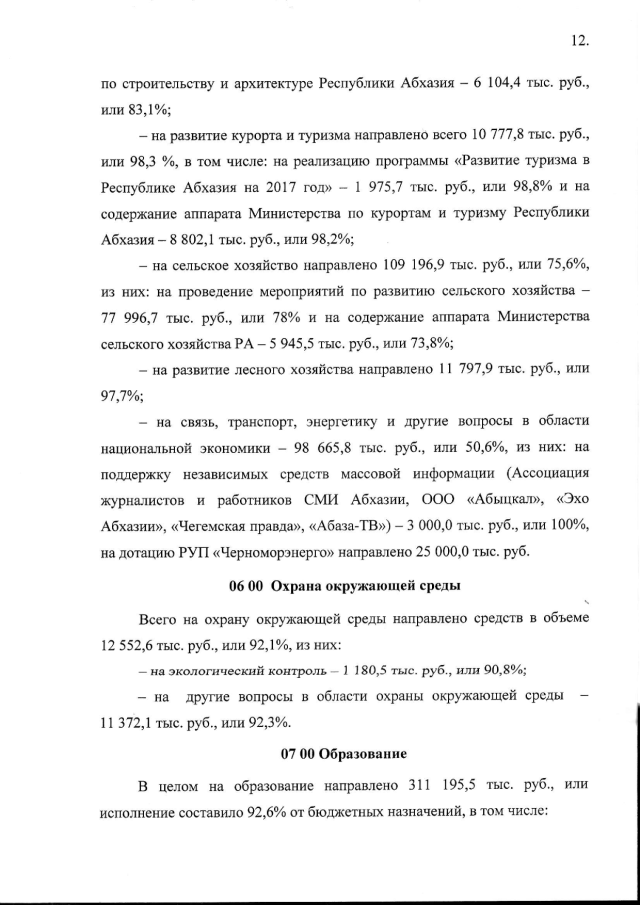Постановление Кабинета Министров Республики Абхазия от 29.03.2018 № 46 "Об исполнении Республиканского бюджета за 2017 год"