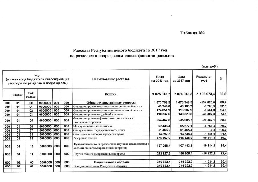 Постановление Кабинета Министров Республики Абхазия от 29.03.2018 № 46 "Об исполнении Республиканского бюджета за 2017 год"