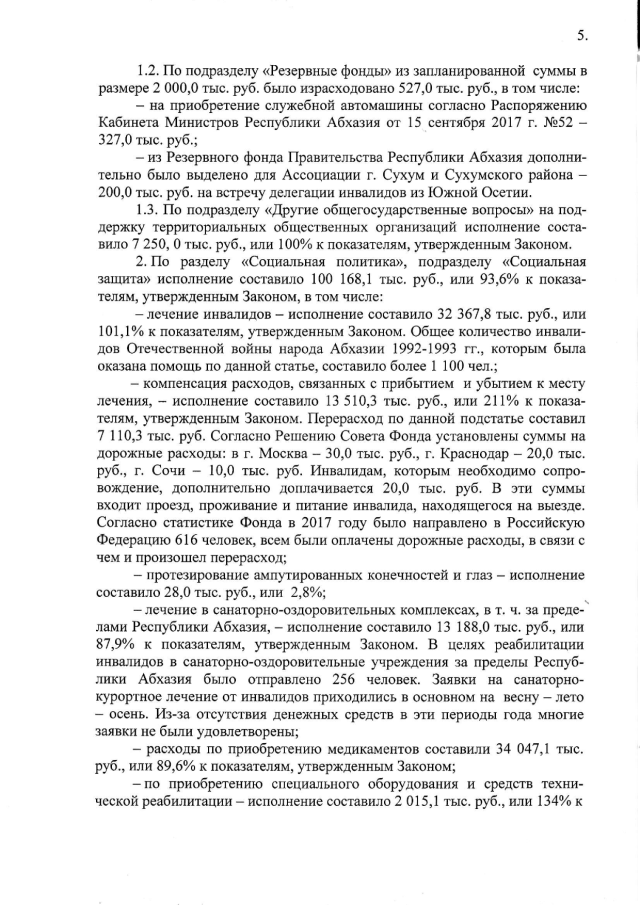 Постановление Кабинета Министров Республики Абхазия от 29.03.2018 № 47 "Об исполнении бюджета Государственного внебюджетного фонда инвалидов Отечественной войны народа Абхазии 1992-1993 гг. за 2017 год"
