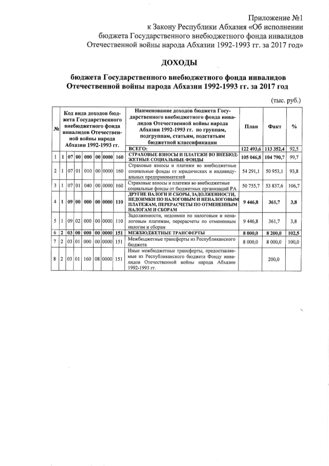 Постановление Кабинета Министров Республики Абхазия от 29.03.2018 № 47 "Об исполнении бюджета Государственного внебюджетного фонда инвалидов Отечественной войны народа Абхазии 1992-1993 гг. за 2017 год"