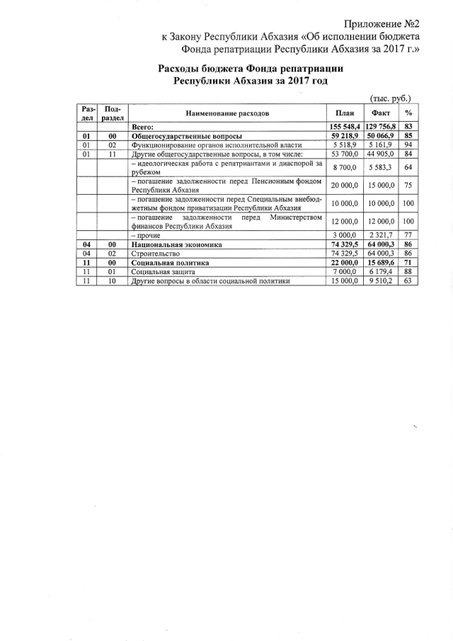 Постановление Кабинета Министров Республики Абхазия от 29.03.2018 № 49 "Об исполнении бюджета Фонда репатриации Республики Абхазия за 2017 год"