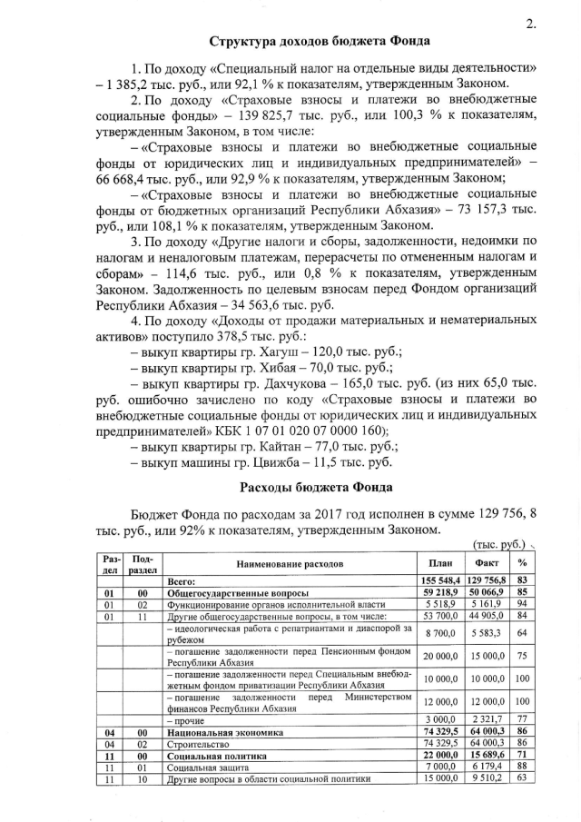 Постановление Кабинета Министров Республики Абхазия от 29.03.2018 № 49 "Об исполнении бюджета Фонда репатриации Республики Абхазия за 2017 год"