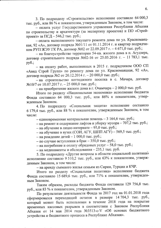 Постановление Кабинета Министров Республики Абхазия от 29.03.2018 № 49 "Об исполнении бюджета Фонда репатриации Республики Абхазия за 2017 год"