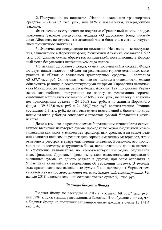 Постановление Кабинета Министров Республики Абхазия от 29.03.2018 № 50 "Об исполнении бюджета Дорожного фонда Республики Абхазия за 2017 год"