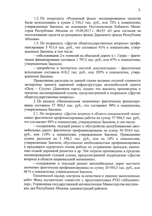 Постановление Кабинета Министров Республики Абхазия от 29.03.2018 № 50 "Об исполнении бюджета Дорожного фонда Республики Абхазия за 2017 год"