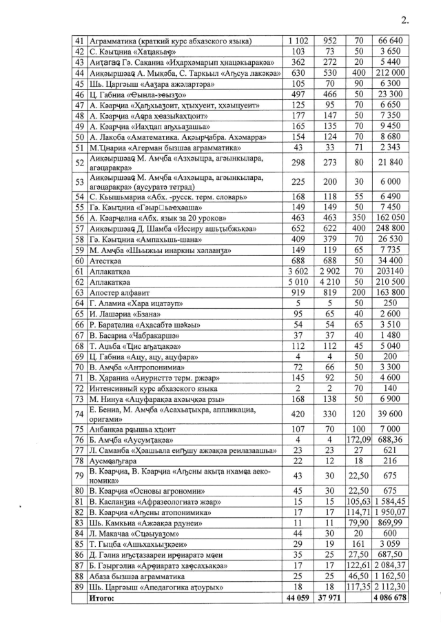 Распоряжение Кабинета Министров Республики Абхазия от 28.12.2017 № 74 "О даче согласия Государственному комитету Республики Абхазия по государственной языковой политике на частичную безвозмездную передачу и реализацию (продажу) учебно-методической литературы и книжной продукции"