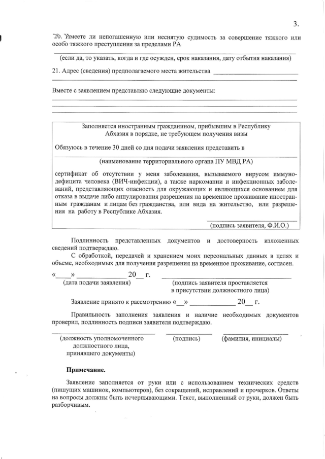 Постановление Кабинета Министров Республики Абхазия от 31.05.2018 № 72 "Об утверждении порядка выдачи иностранным гражданам и лицам без гражданства разрешения на временное проживание в Республике Абхазия, формы бланка разрешения на временное проживание, формы заявления о выдаче разрешения на временное проживание в Республике Абхазия"