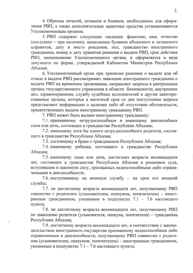Постановление Кабинета Министров Республики Абхазия от 31.05.2018 № 72 "Об утверждении порядка выдачи иностранным гражданам и лицам без гражданства разрешения на временное проживание в Республике Абхазия, формы бланка разрешения на временное проживание, формы заявления о выдаче разрешения на временное проживание в Республике Абхазия"