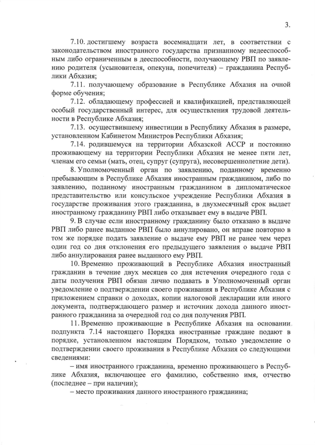 Постановление Кабинета Министров Республики Абхазия от 31.05.2018 № 72 "Об утверждении порядка выдачи иностранным гражданам и лицам без гражданства разрешения на временное проживание в Республике Абхазия, формы бланка разрешения на временное проживание, формы заявления о выдаче разрешения на временное проживание в Республике Абхазия"